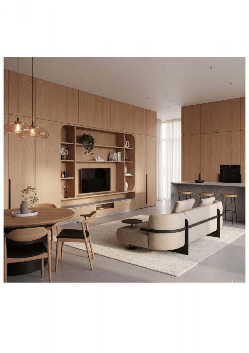 La tendencia hacia espacios visualmente limpios impulsa el diseño de mobiliario completamente integrado en la arquitectura.